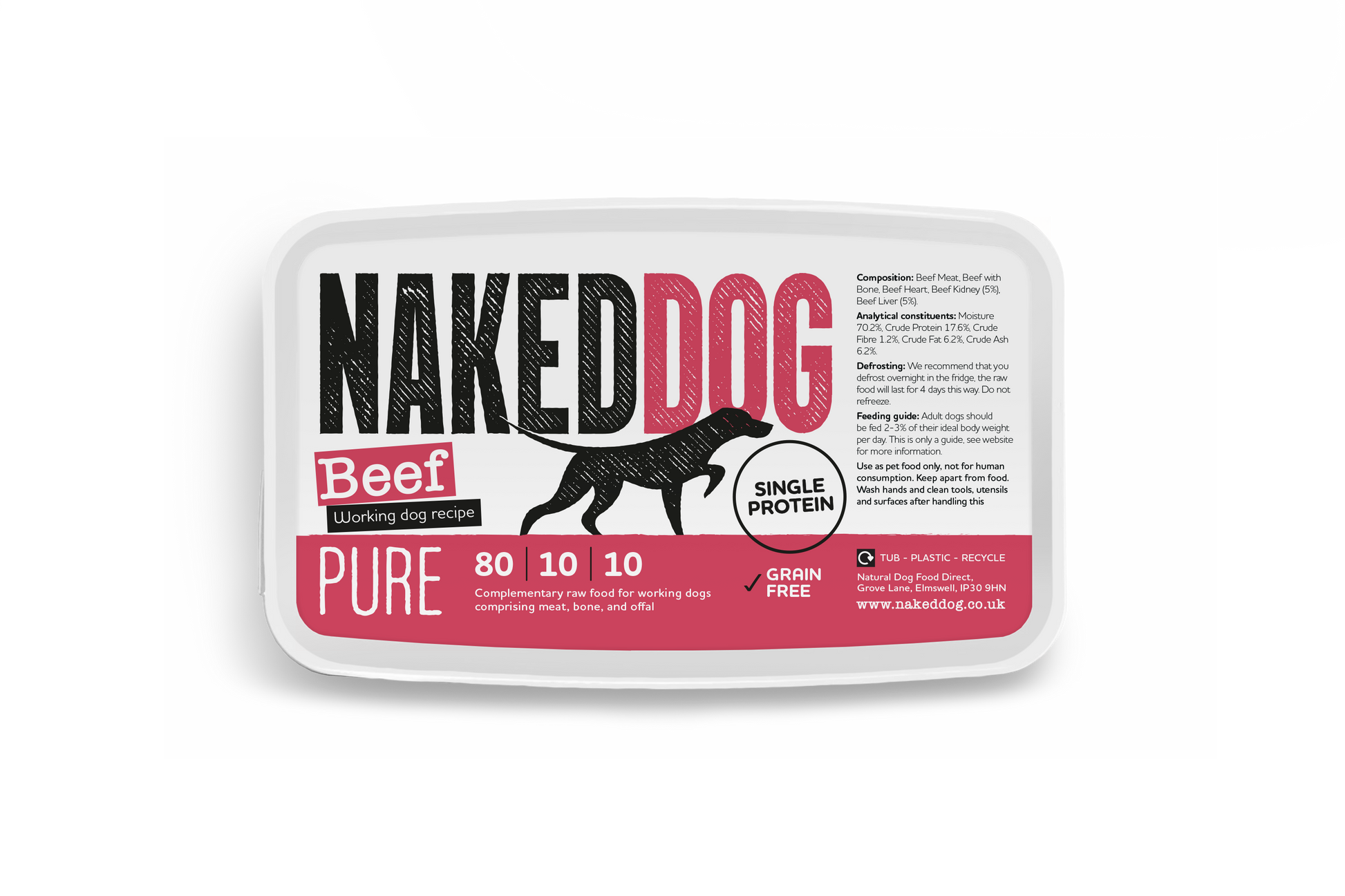 User friendly recyclable tub takes the fuss and mess out of raw feeding - and can be easily stored in the fridge for up to 4 days!